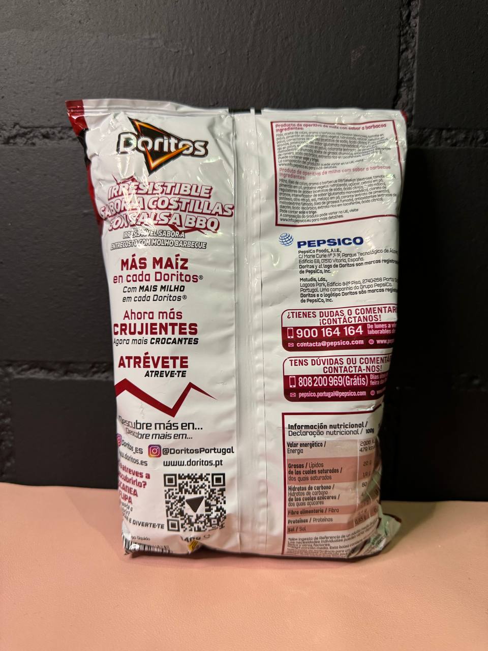 Zutaten und Allergene: Mais, Rapsöl, Rib'Session BBQ-Aroma [Dextrose, Tomatenpulver, Paprikapulver, hydrolysiertes Pflanzenprotein, Zucker, Zwiebelpulver, Säureregulatoren (Natriumacetate, Zitronensäure, Apfelsäure), Aromen, Geschmacksverstärker (Mononatriumglutamat), Kaliumchlorid, Knoblauchpulver, Salz, Melassepulver, Farbstoff (Paprikaextrakt), geräuchertes Maltodextrin, geräuchertes Sonnenblumenöl], Antioxidationsmittel (Rosmarinextrakt, Ascorbinsäure, stark tocopherolhaltige Extrakte, Zitronensäure). Kann Soja und Weizen enthalten.