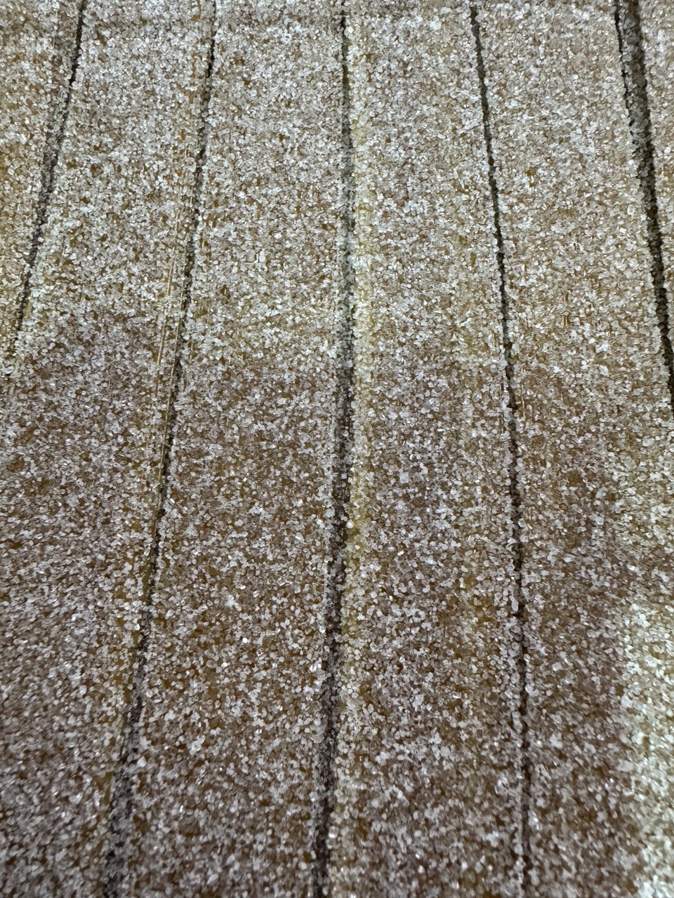Zutaten: Glukose-Fruktose-Sirup, Zucker, Weizenmehl (Gluten), Stärke, Säuerungsmittel (E296), Pflanzenfett (Palm), Säuerungsmittel (E330, E270), Säureregulatoren (E325, E331), Salz, Emulgator (E471), Aromen, Feuchthaltemittel (E422), Farbstoff: E150d.