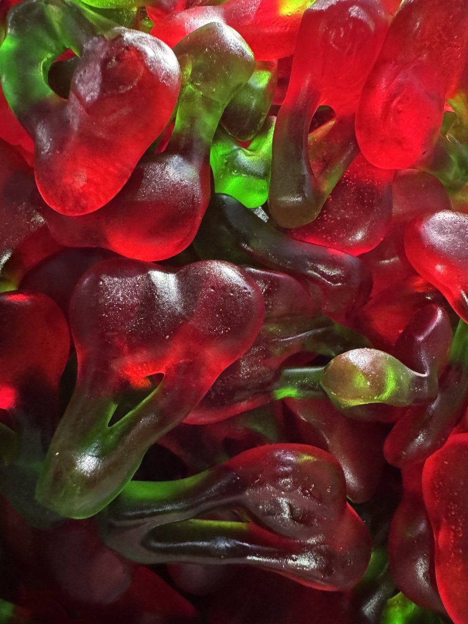 Glukosesirup, Zucker, Gelatine, Wasser, Feuchthaltemittel E420, Säuerungsmittel E330, E270, Säureregulator E325, Aromen, Überzugsmittel E901, E903, Farbstoffe: E102, E129, E133 (E102, E129 können die Aktivität und Aufmerksamkeit von Kindern beeinträchtigen).