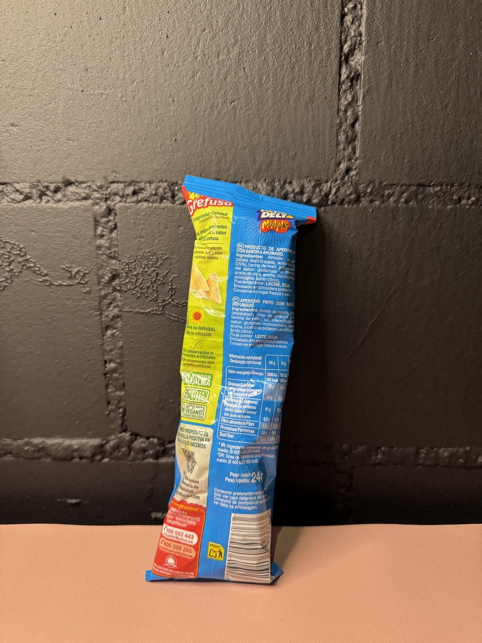 Die Zutaten des Papa Delta-Snacks von Grefusa umfassen Kartoffelstärke, getrocknete Kartoffeln, Sonnenblumenöl, Maismehl, Olivenöl, Salz und Aromen zur Geschmacks- und Rauchverbesserung. Pro 100 g beträgt der Nährwert ungefähr: 488 kcal (Energie), 24 g Fett, 2,8 g gesättigtes Fett, 61 g Kohlenhydrate, 0,5 g Zucker und 3,9 g Protein. Zutaten (Beispiel: Papa Delta Original)